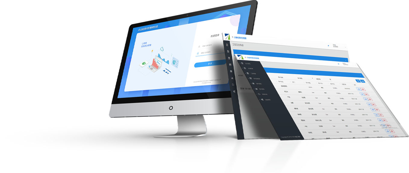 整体设计高端大气,使用了蓝色和灰色为主色,在登录页面上采用了插画风格。在突出经营内控管理的主题情况中,在视觉上给人更多舒适感。
