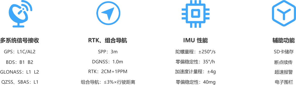● 多系统 RTK 卫星智能融合定位方案,支持 DGPS卫星差分方案